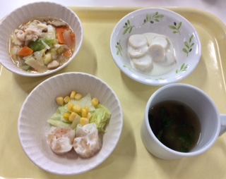 八宝菜・シュウマイ・バナナヨーグルト・香味スープ