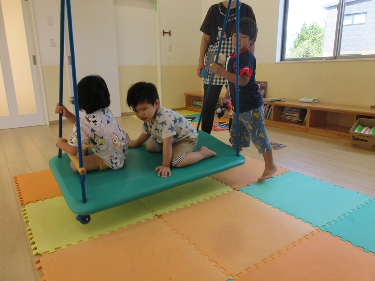 順番を待ちながら、お友達の乗るブランコを押してくれました🌟