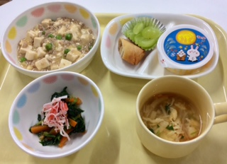 マーボー豆腐・中華風浸し・シャインマスカット・お月見ゼリー・卵スープ