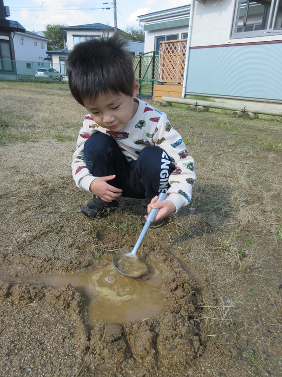「きたきた!」と、お水が流れる様子を一緒に観察😊