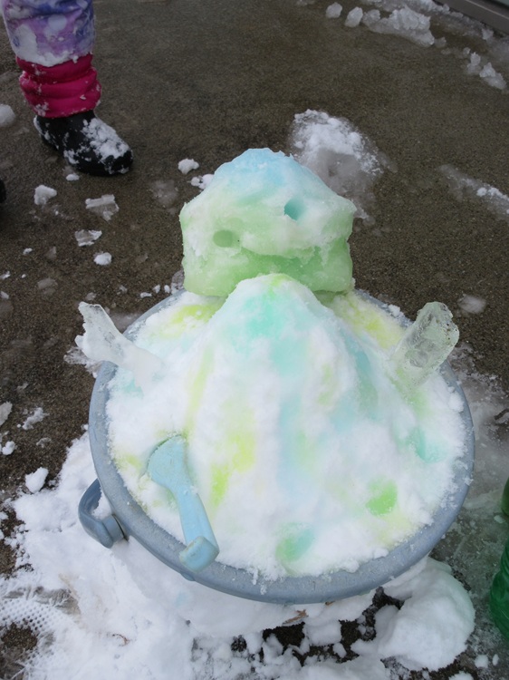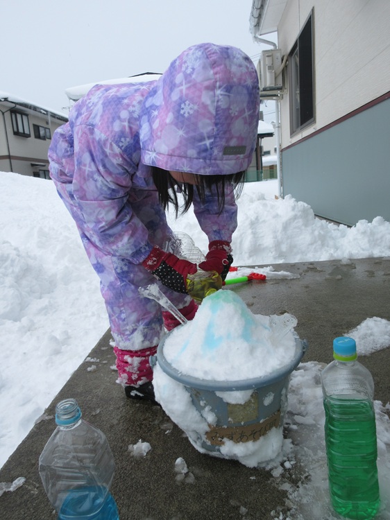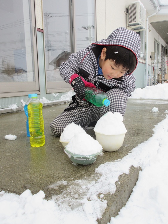雪に色水をかけたら、まるで本物のかき氷🍧
