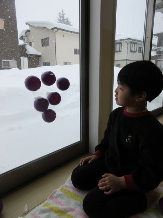 紫色のボールを集めて「ぶどう!」🍇