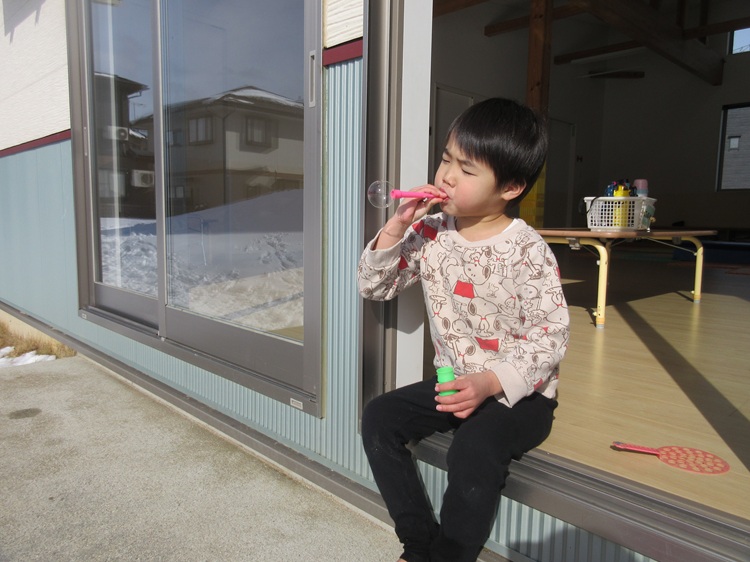 青空に飛んでいくしゃぼん玉.。o○