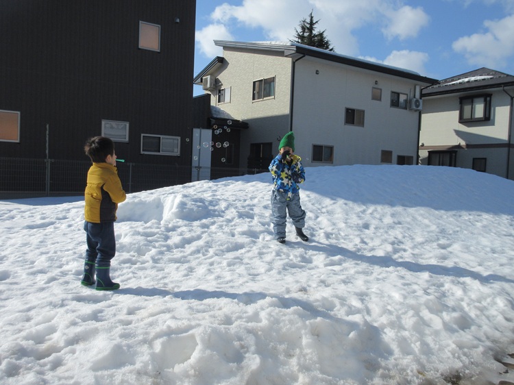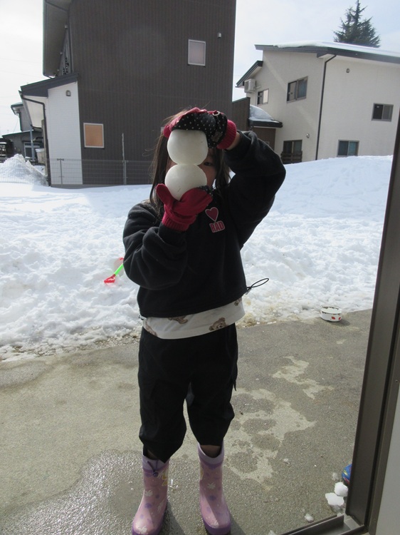 まんまるの雪玉が完成したよ😆✨