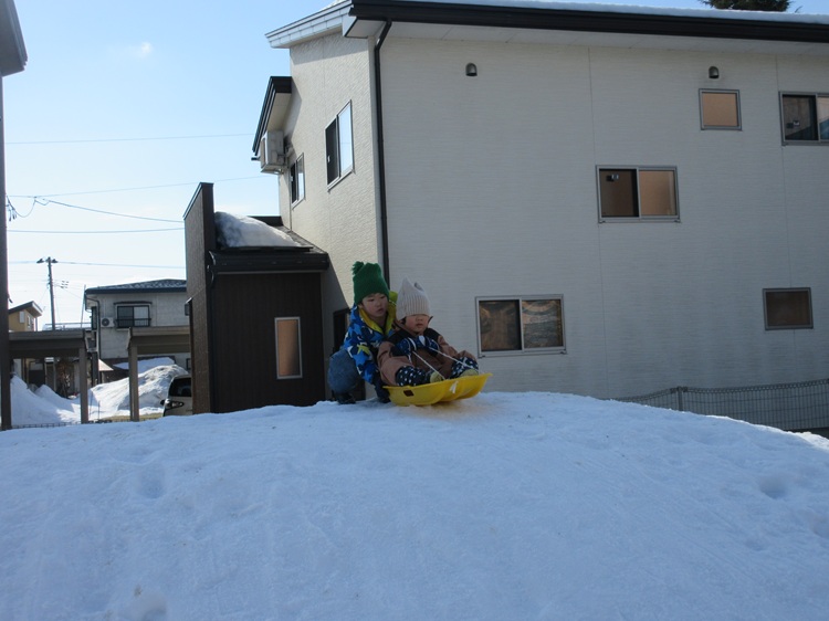 器型のスコップ2個に雪を詰めて合体!💪